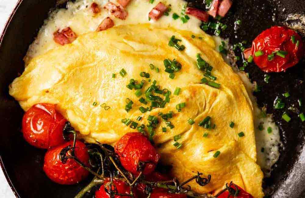 This “scrambled egg” approach is easier and yields a better result without having to worry about raw egg in the middle. Today’s omelette recipe is filled with ham and cheese. Sauté your ham first!